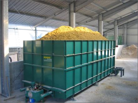 Die Austragung aus den Containern erfolgt über zwei bzw. drei parallel angeordnete, hydraulisch betätigte Schubböden.