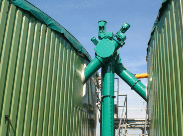 In Kombination mit weiteren Spiralförderschnecken wird ein dosierter Transport von Feststoffsubstraten bis in den Fermenter vollautomatisch realisiert.