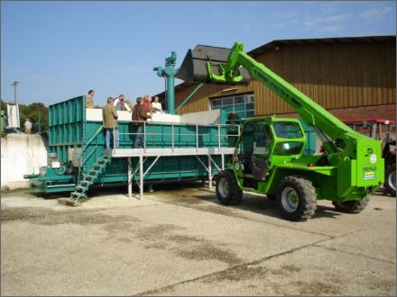 Auf dem Firmengelände der HUNING Umwelttechnik in Melle-Kerßenbroich betreiben wir zu Demonstrations- und Testzwecken einen Schubbodencontainer mit einem Volumen von 80 qbm. Zusätzlich ist der Container mit einer Dosier- und Auflösewalze ausgerüstet.